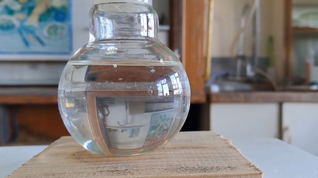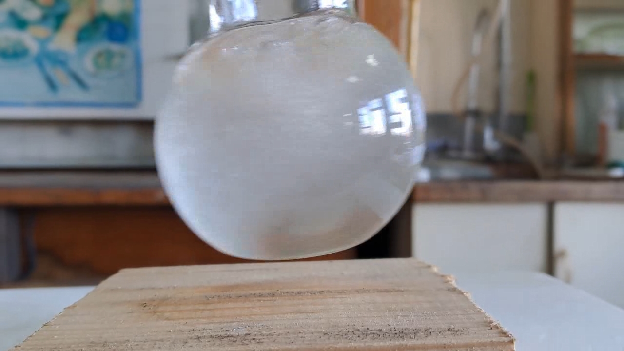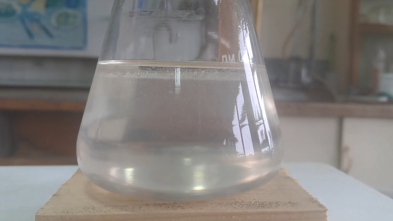 Этилацетат и насыщенный раствор гидроксида калия: аномальное влияние концентрации на скорость химической реакции - часть 3 In the previous part of this article, we described the hydrolysis of ethyl acetate with a dilute sodium hydroxide solution. This procedure served as a necessary control experiment and marked the conclusion of our study of falsified acetone. Later, I decided to conduct additional experiments with ethyl acetate. Although unrelated to falsified acetone, these experiments extend the study of ethyl acetate hydrolysis described in the previous part. For the previous experiment, I used a dilute sodium hydroxide solution. During the reaction, the solution heated up, and gas bubbles formed - likely due to localized boiling of ethyl acetate. If a dilute alkali solution could generate such heating and boiling, a saturated solution should intensify this effect. I recalled a plastic bottle containing potassium hydroxide. The stopper was loose, allowing the substance to absorb moisture from the air. As a result, part of the potassium hydroxide formed a solution, while the remaining solid appeared unchanged. With some effort, I transferred this substance to a beaker and prepared an almost saturated potassium hydroxide solution (50 ml). I then poured 30 ml of ethyl acetate into a flask, added the potassium hydroxide solution, sealed the flask tightly, and shook it. An emulsion formed, but upon stopping shaking, it quickly separated into two liquid layers. This instability can be explained simply: the two liquids had significantly different densities. In the previous experiment, the sodium hydroxide solution was more dilute, resulting in a more stable emulsion because the density difference between the two liquids was smaller. However, the most unexpected result was yet to come. Despite repeated shaking, the ethyl acetate layer remained unchanged after phase separation. The flask remained cold throughout the process, indicating no signs of ethyl acetate hydrolysis. To accelerate the chemical reaction, I heated the flask in a water bath until bubbles began forming in the ethyl acetate layer. I then removed the flask from the bath and shook it again. The flask cooled down, yet still, no reaction was observed. I continued to shake the flask periodically over several hours, but the ethyl acetate layer did not decrease, and the flask remained cold. A colleague suggested leaving the flask overnight, predicting that complete hydrolysis would occur within that time. However, after 24 hours, the ethyl acetate layer had not visibly diminished. In my view, there were two possible explanations for this unexpected result. First, the potassium hydroxide might have absorbed carbon dioxide from the air during storage in a non-airtight container, leading to its complete conversion into potassium carbonate. While unlikely, this possibility could not be entirely ruled out. Second, the rate of ethyl acetate hydrolysis in a saturated alkali solution might be significantly lower than in a dilute alkali solution. In other words, increasing the concentration of sodium or potassium hydroxide did not accelerate the reaction but instead drastically slowed it down. Two factors could explain this phenomenon: 1. A saturated potassium hydroxide solution has a much higher density than a dilute sodium hydroxide solution. As a result, the emulsion quickly breaks down, drastically reducing the contact surface between the two phases. Since the hydrolysis is a heterogeneous reaction, a smaller contact area leads to a significantly lower reaction rate. 2. Ethanol is completely miscible with water in all proportions. However, when potassium carbonate (potash) is added to an ethanol-water solution, phase separation occurs: the ethanol forms the upper layer, while the potassium carbonate solution remains below. This suggests that potassium carbonate decreases ethanol's solubility in water. On the other hand, ethyl acetate is only slightly soluble in water (8.3 g/100 ml at 20°C), but even this limited solubility promotes its hydrolysis. The reaction itself likely occurs in the aqueous phase as a homogeneous process. However, since ethyl acetate and water initially exist as separate phases, the overall process is heterogeneous: first, ethyl acetate must dissolve in water (the heterogeneous stage), and only then does hydrolysis occur in the solution (the homogeneous stage). By analogy with ethanol and potassium carbonate, it is likely that a high concentration of potassium hydroxide significantly reduces ethyl acetate's solubility in water. As a result, the transfer of ethyl acetate from the organic phase to the aqueous phase is hindered, leading to a sharp decrease in the hydrolysis rate. To test this hypothesis, I needed to lower the concentration of potassium hydroxide by adding water. I transferred the flask's contents (the ethyl acetate and potassium hydroxide solution) to a larger flask and added 100 ml of water. After sealing the flask, I shook it. This time, the resulting emulsion was noticeably more stable than before, because the diluted potassium hydroxide solution had a lower density. After stopping shaking, the emulsion separated into two layers. I repeated this process several times. As the emulsion separated, I noticed the release of gas bubbles, similar to what I observed in the previous experiment with dilute sodium hydroxide. The flask became warm. With each subsequent shaking and phase separation, the volume of the ethyl acetate layer gradually decreased. After approximately twenty minutes, the upper layer had completely disappeared. For a few more minutes, ethyl acetate remained in the flask as an emulsion. After shaking, a thin film of liquid flowed down the inner walls of the flask. It was evident that this film was not a homogeneous solution but rather a heterogeneous emulsion. However, soon the remai