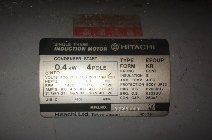Однофазный асинхронный двигатель Hitachi: