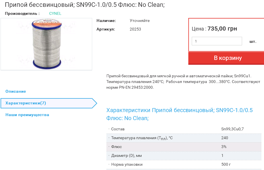 А купить так же не проблема, я задал в поисковике "чистое олово". Результатов много, так там и ХЧ, и ЧДА, и просто Ч. Цены естественно разные, продают и в и Днепре, и Киеве, и Запорожье, и еще много фирм.