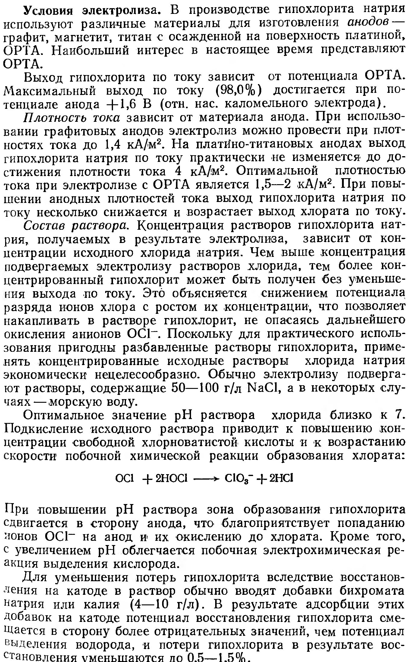 Однако в вашем случае даже и этим не стоит заморачиваться: вы ведь не осаждаете, не полируете при помощи электролиза -- чем больше врубите ток, тем активнее будет шуровать хлор с анода, тем быстрее получите необходимой концентрации гипохлорит! Куда важнее для вас аппаратное оформление (графитовый анод должен быть у дна глубокого сосуда -- чтобы подымающийся кверху хлор хорошо перемешивал раствор и успевал в нём раствориться; катод может быть вверху или сбоку), соблюдение ТБ (вентиляция!)...