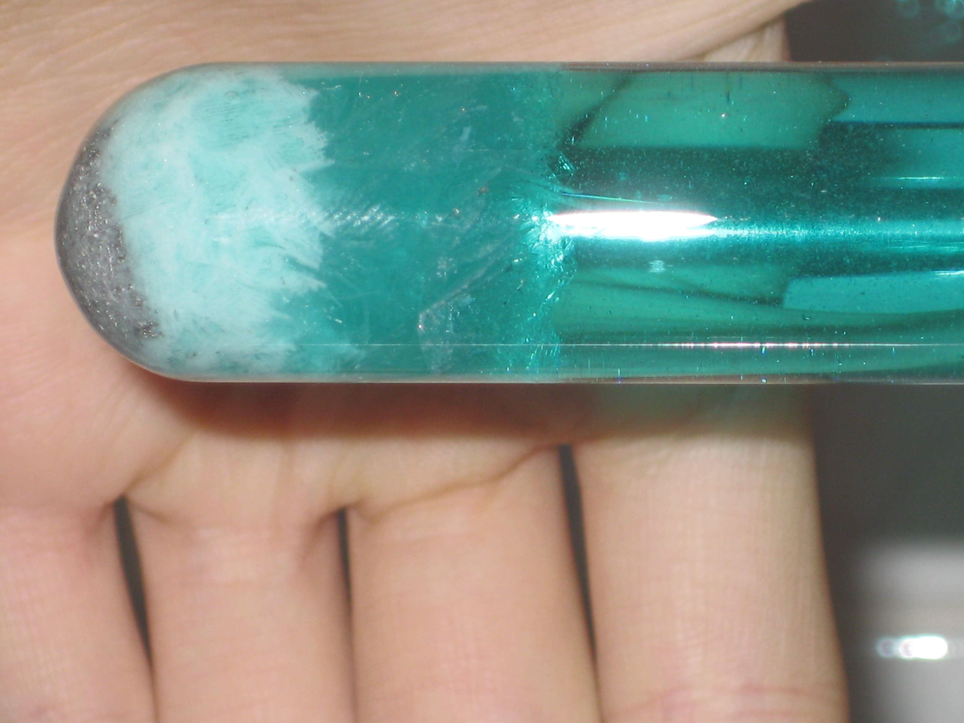мензурку с блеклыми иглообразными кристаллами, покрытыми тонкой