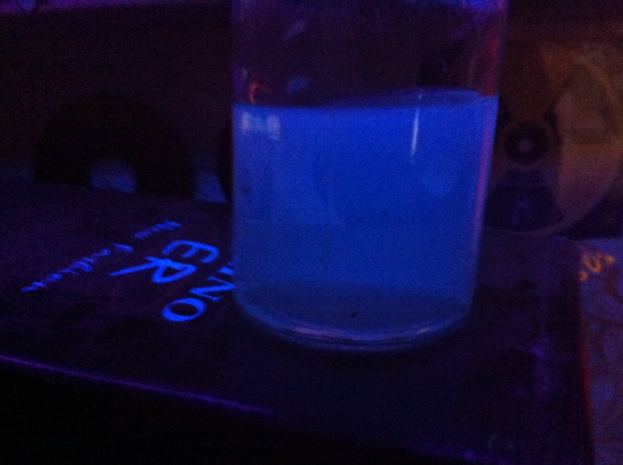 Флуоресценция ацетона под лампой Вуда.
