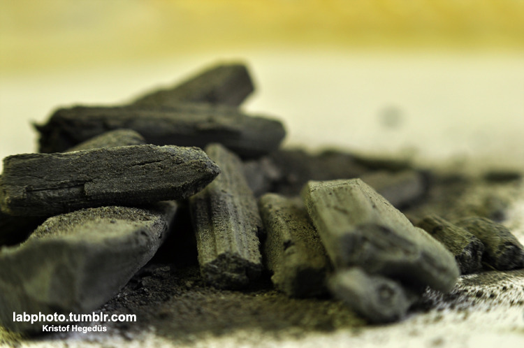 Это НЕ древесный уголь, а гидрид кальция. Добавьте немного воды и выделится много водорода.