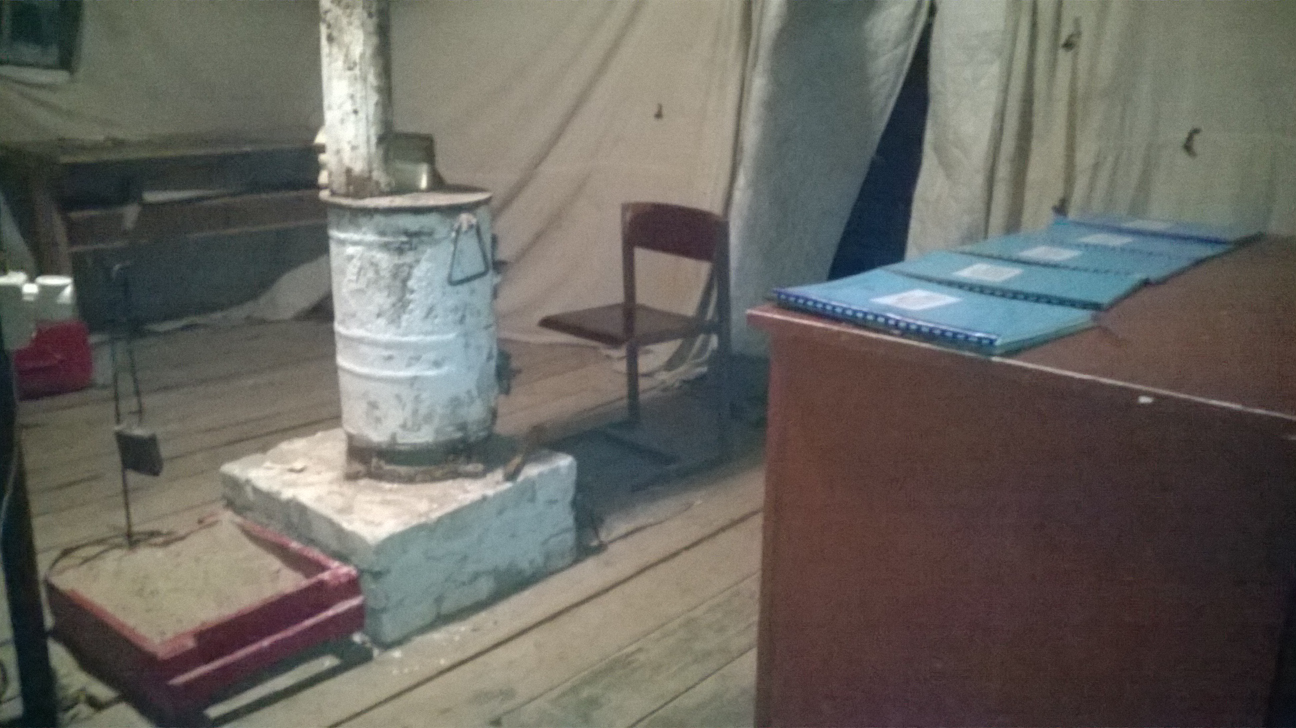 Холодная, сырая палатка на 25 человек, кровать - разбита, есть только матрац и подушка. Позже дали спальник. Лег спать одетым в зимнюю форму, накрылся спальником. Сначала - ничего, потом - замерз.