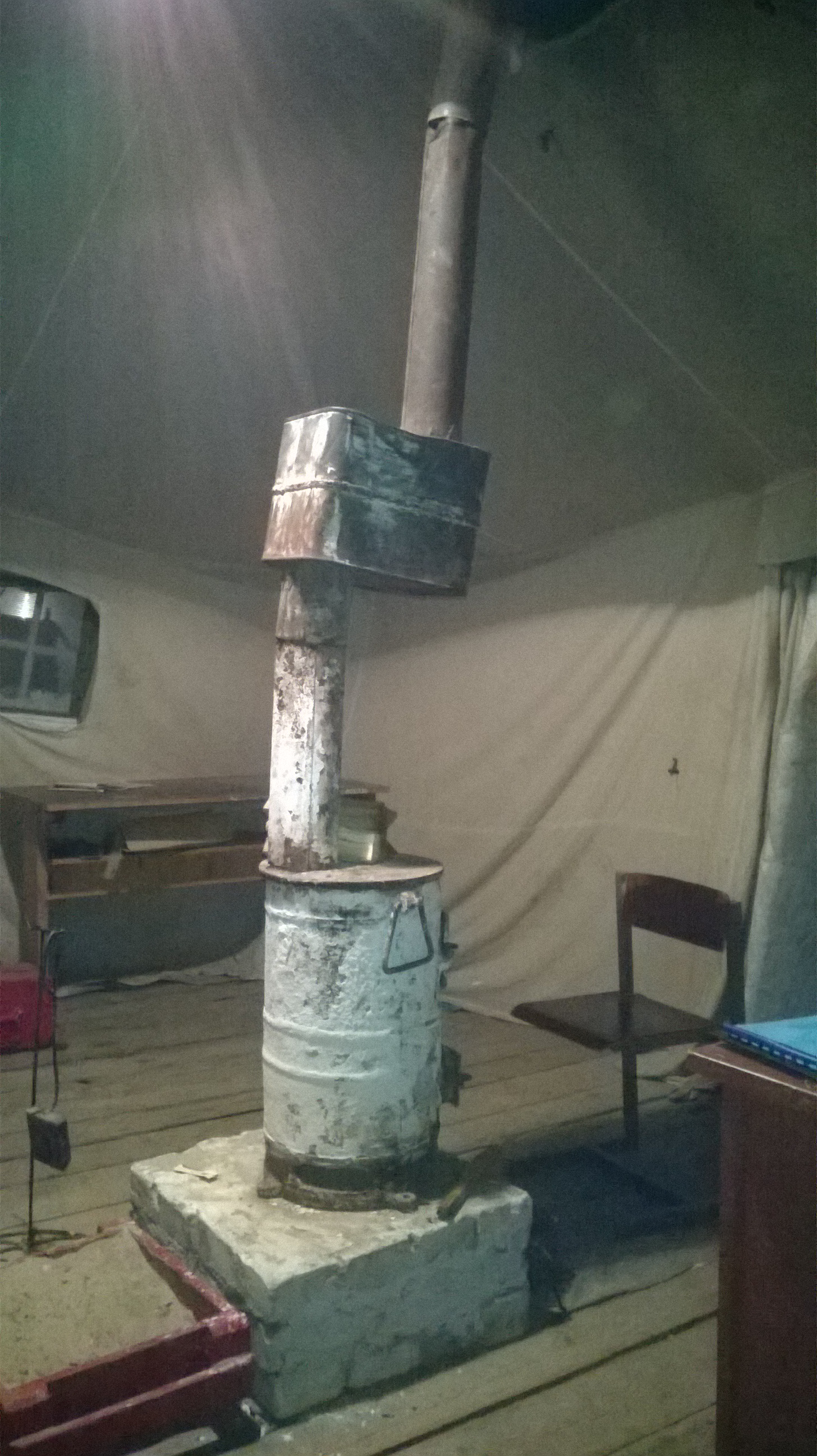 Договорились, что первые двое дежурят с 20 до 1 ночи, мы (вторая пара) с 1 до 6 утра. Причем 1 человек спит час, другой - топит печку, делает обходы и т.п. Через час - меняемся.