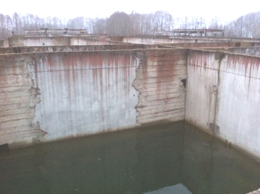 Недостроенные очистные сооружения. Находится где то километр за городом.