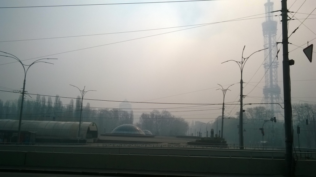 Сегодня самое сильное задымление Киева, которое я видел за всю жизнь. По всему городу примерно, как туман. Сильный запах дыма. Горят Чернобыль и Житомирская обл.