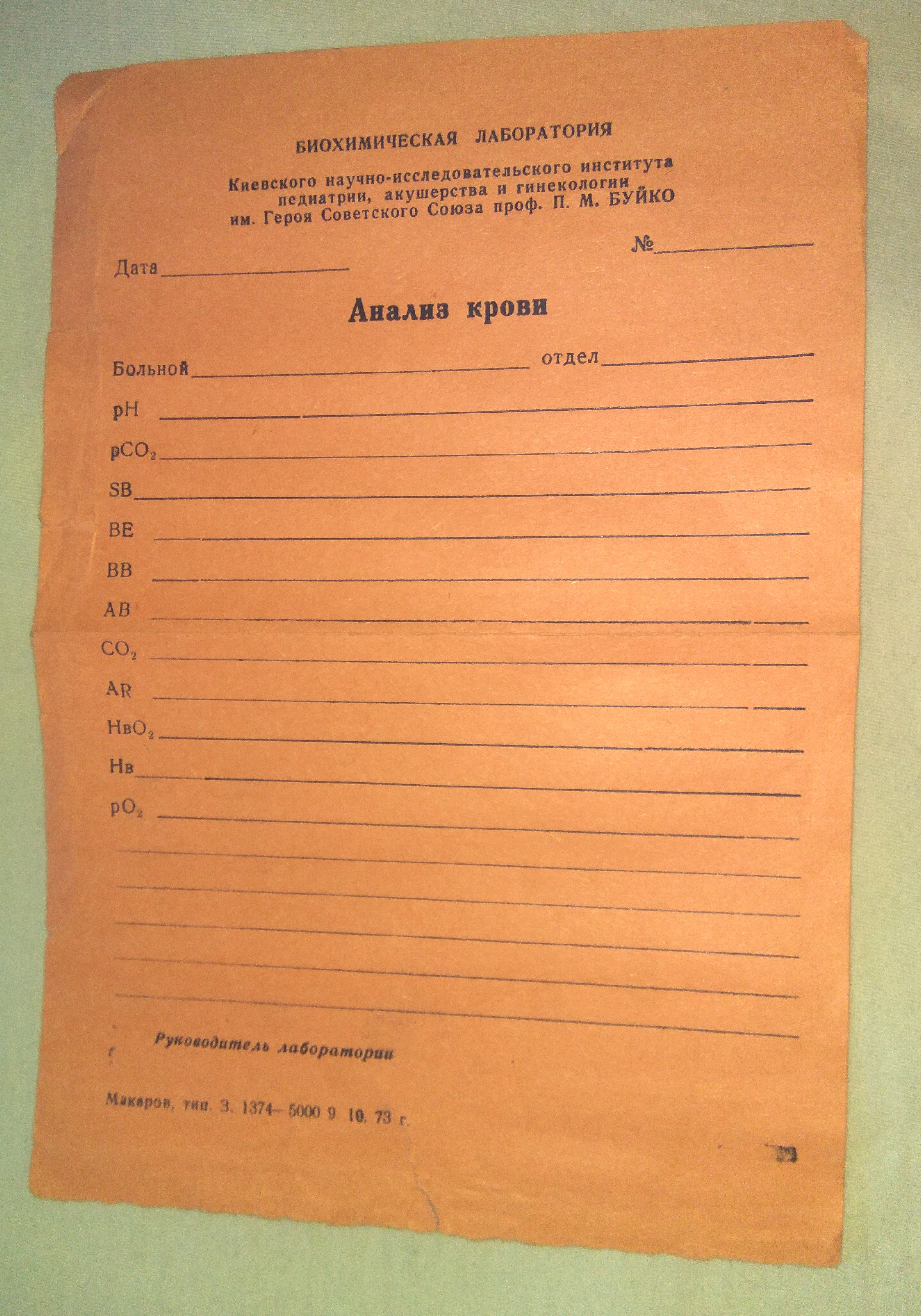 Коллега в старой книге нашел раритет - там вместо закладки был старый бланк анализа крови: