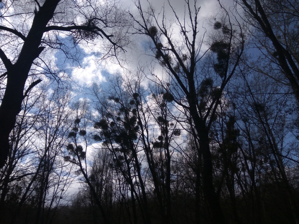 Позавчера ехал на маршрутке. В пригороде вдоль трассы встретил тополя, на каждом из которых растет по три десятка кустов омелы, самих деревьев - тоже несколько десятков.