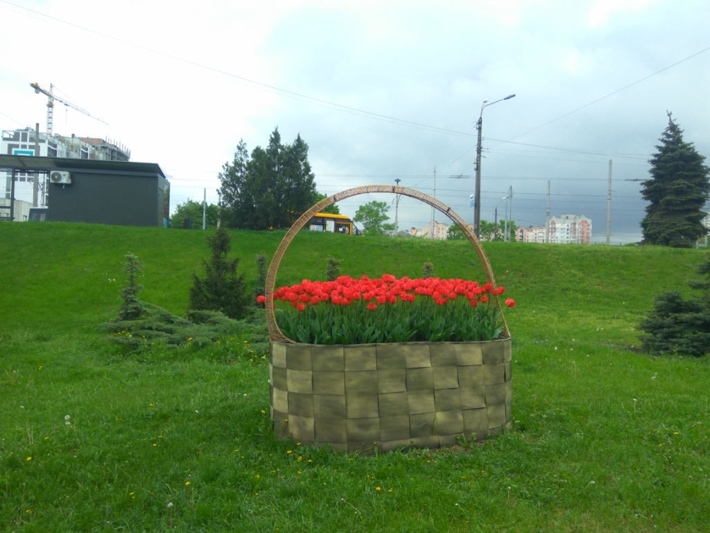 А эти фото импровизированной "корзинки с тюльпанами" я сделал в средине мая у нас в Киеве (район Индустриального моста)