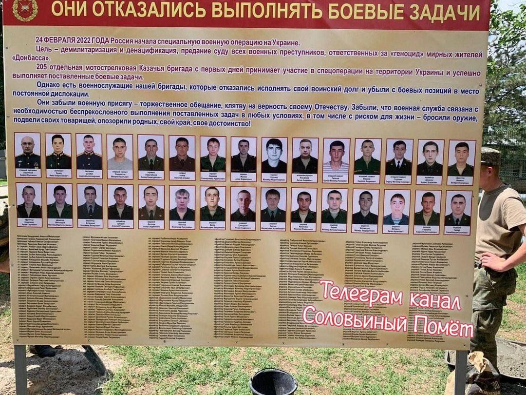 Более 300 военнослужащих 205-й отдельной мотострелковой казачьей бригады из г.Будённовск на Ставрополье отказались участвовать в безумной путинской войне с Украиной. Люди не хотят умирать из-за прихоти сбрендившего кремлевского идиота. Доска позора определенно лучше, чем черный пакет.