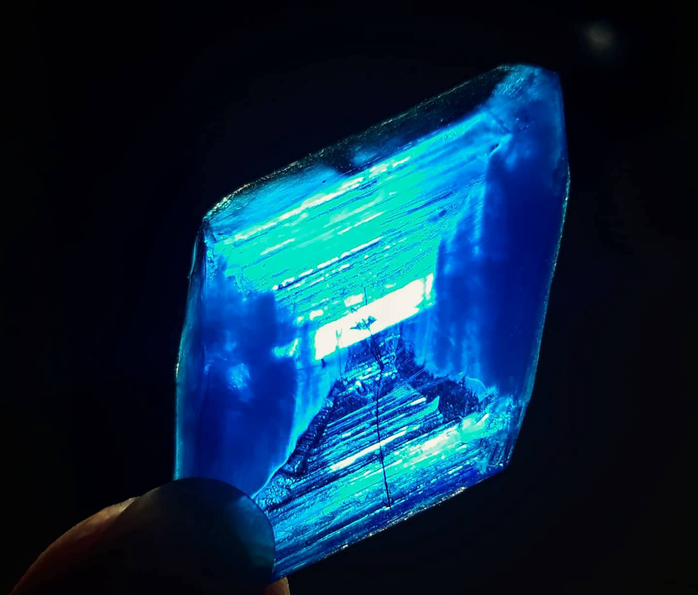 Copper sulfate crystal internal structure, showing the layering that occurs during the crystallization process