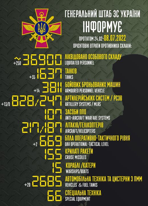 Обратите внимание на количество техники за сутки, особенно - танков. Хотелось бы, чтобы соответствовало: с "бавовной" в тылу у рашистов это коррелирует.