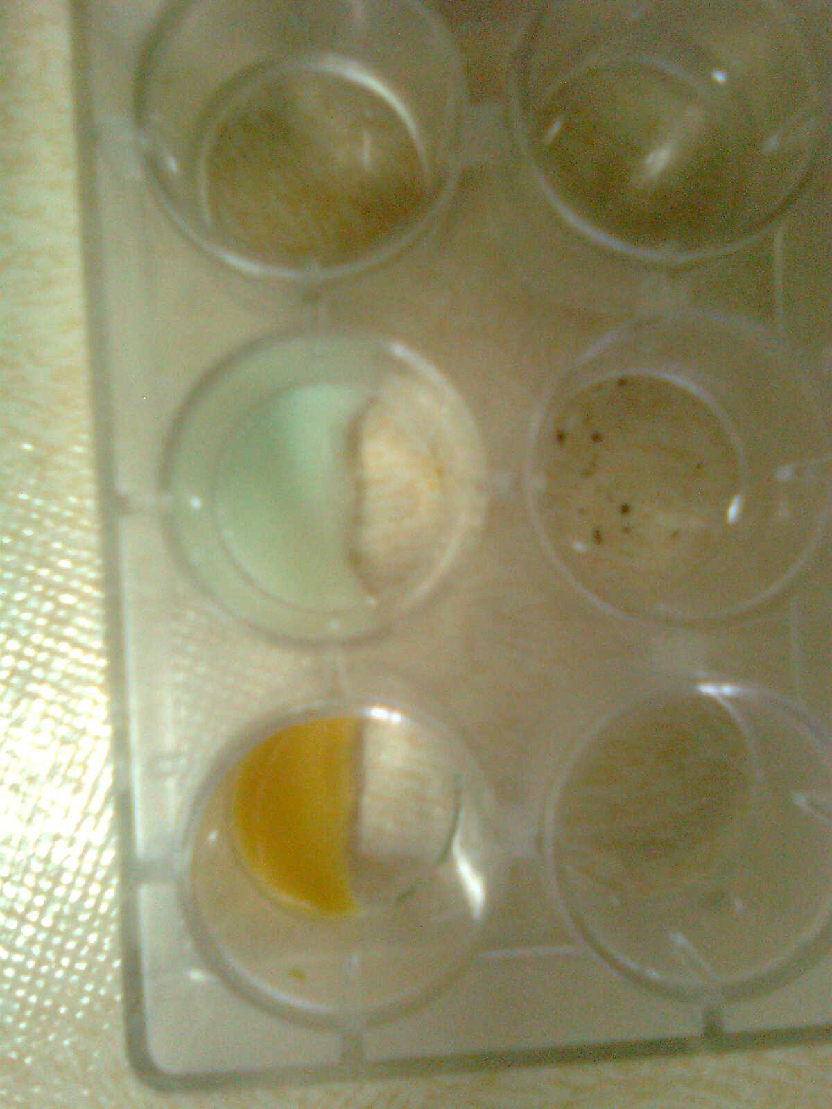 С карбонатом натрия дает белый осадок. В избытке КОН гидроокись растворяется. Я сначала подумал что белый осадок с желтой кровянной солью это соль Эверитта K2Fe[Fe(CN)6], но это не так, т.к она на воздухе не посинела.