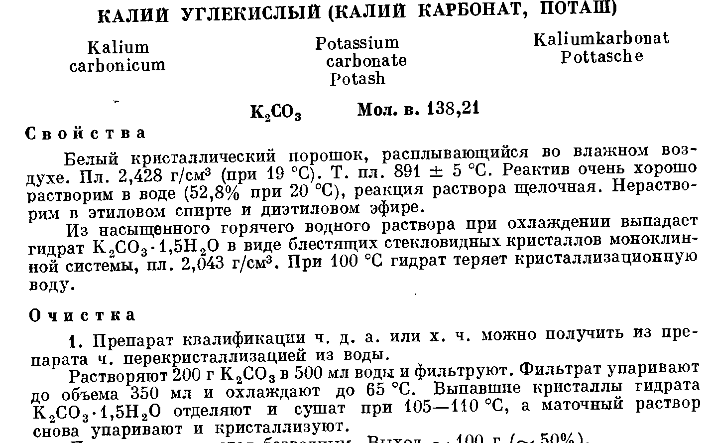 Вот из руководства Карякина, о перекристаллизации поташа