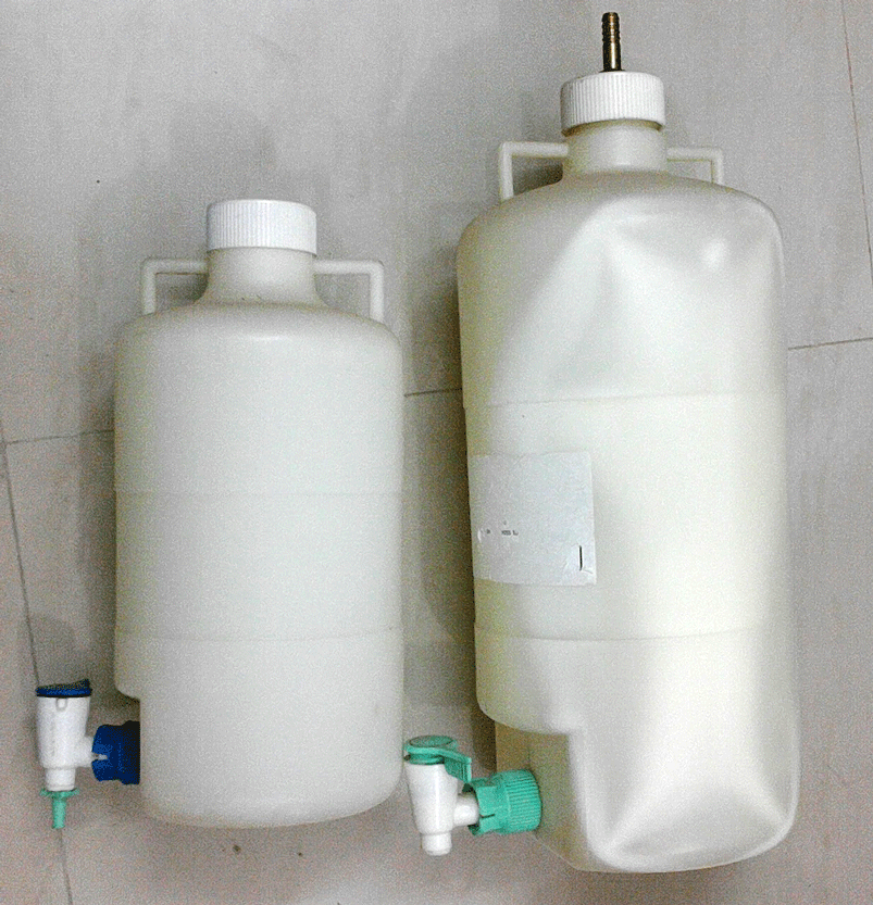 вот мои два карбоя со спиготами (не в курсе на русском как это будет) 5 литров и 10 литров, использовал для всего чего только возможно, вакуумное фильтрование (подающий резервуар) дистиляция (принимающий резервуар), фильтрование под прямым давление в линии, делительная воронка и тд.