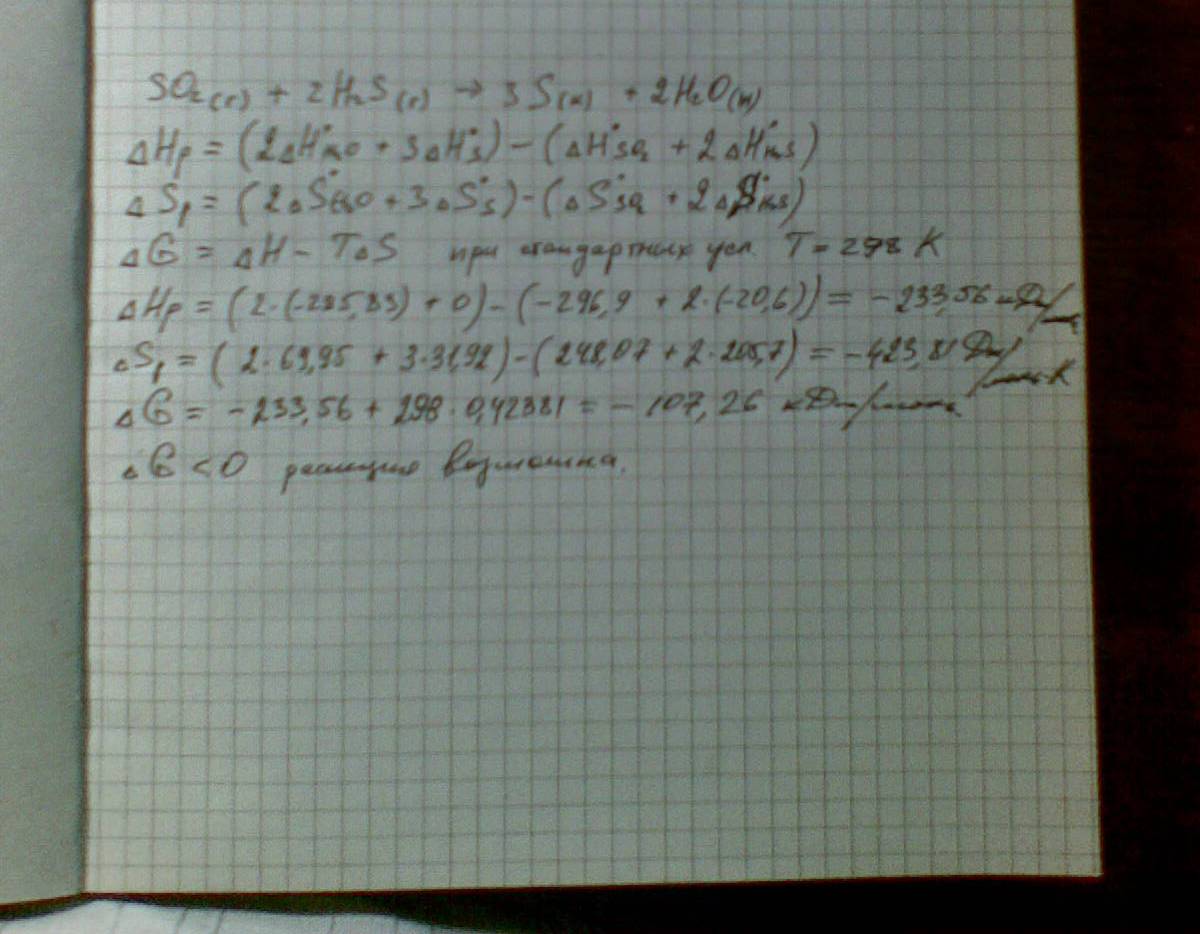SO2(г)+2H2S(г)--->3S(к)+2H2O(ж)