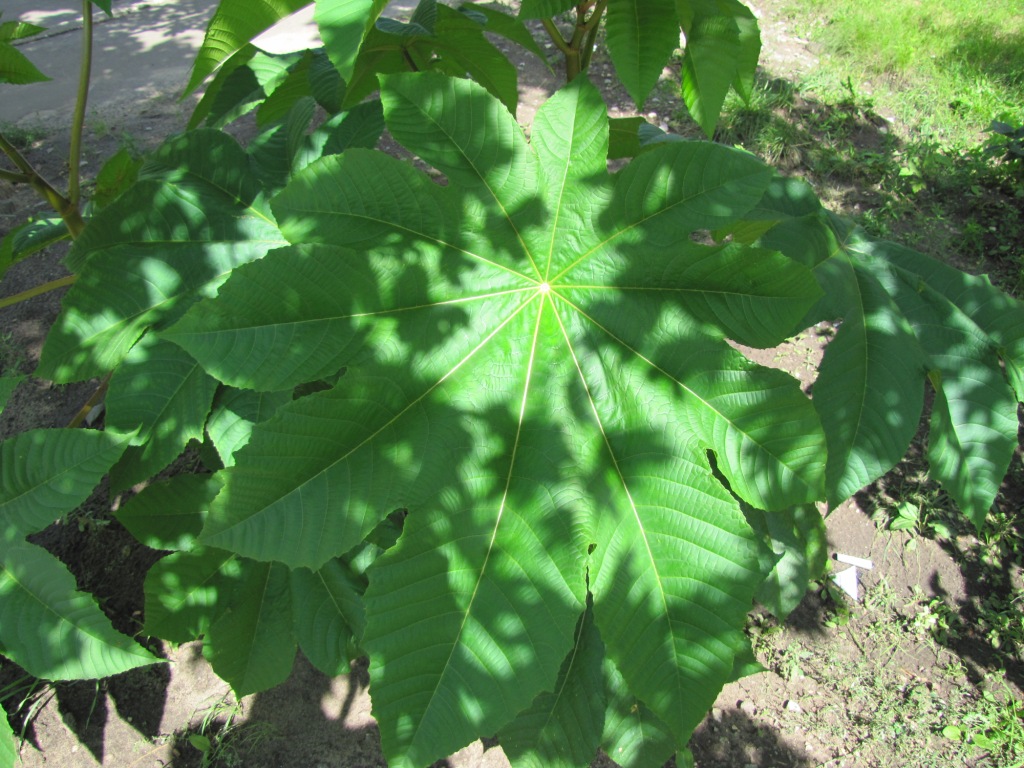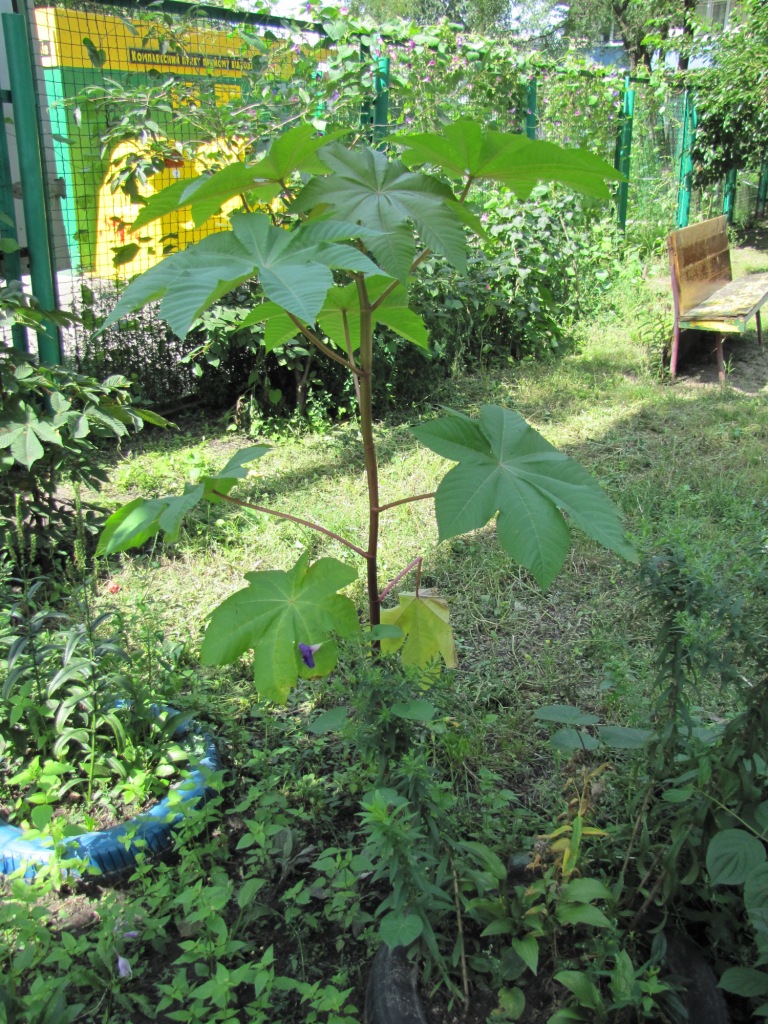 Не знаю, фотографии я сделал на клумбе. На днях сделаю еще несколько фоток (в других местах). Видел клещевину даже на детской площадке.