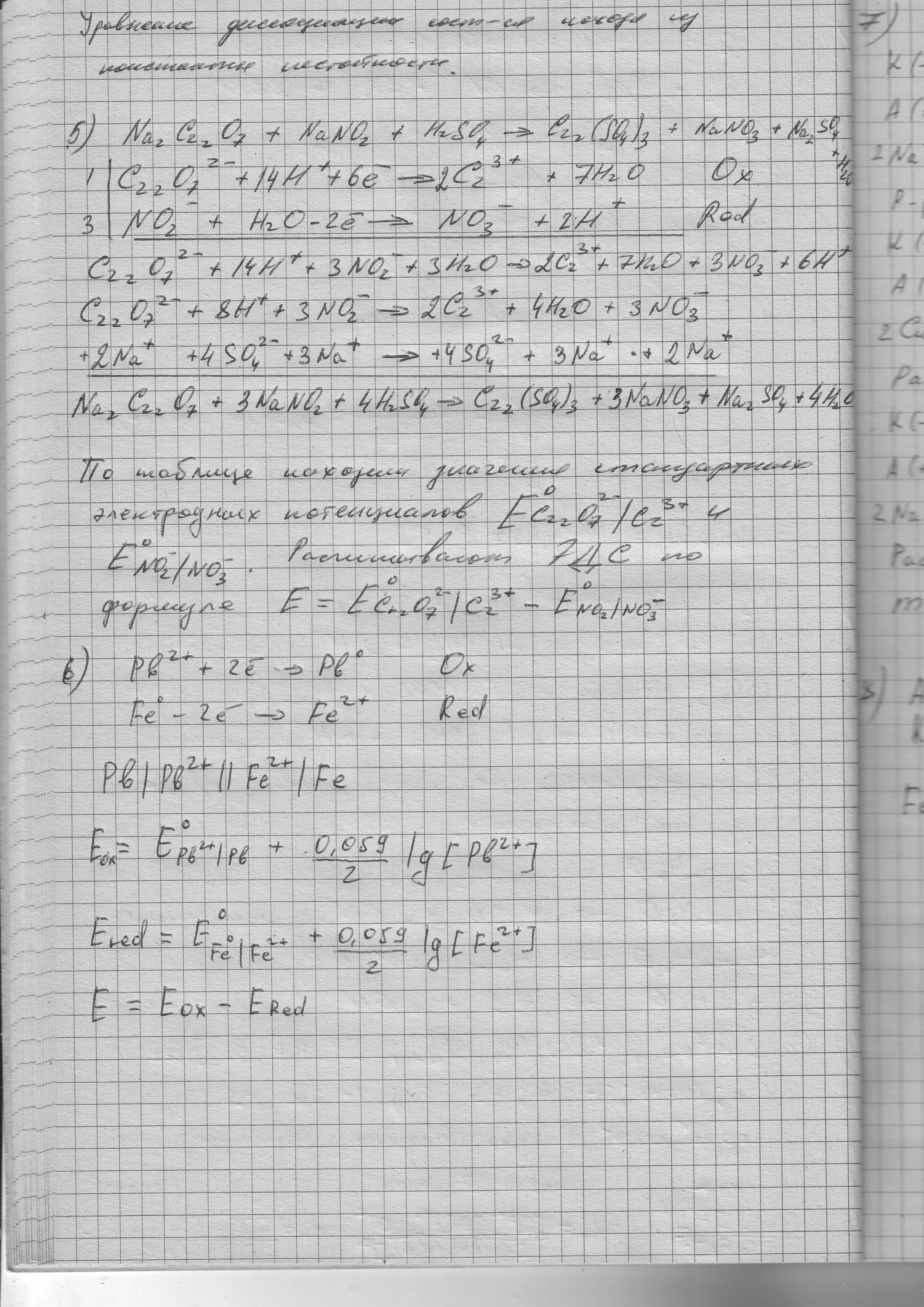 5) Уравняйте реакции ионно-электронным методом, укажите оксилитель и восстановитель, рассчитайте ЭДС, определите направление протекания реакции и ее тип: Na2Cr2O7 + NaNO2 + Н2SO4Cr2(SO4)3 + NaNO3 + Na2SO4 + Н2О