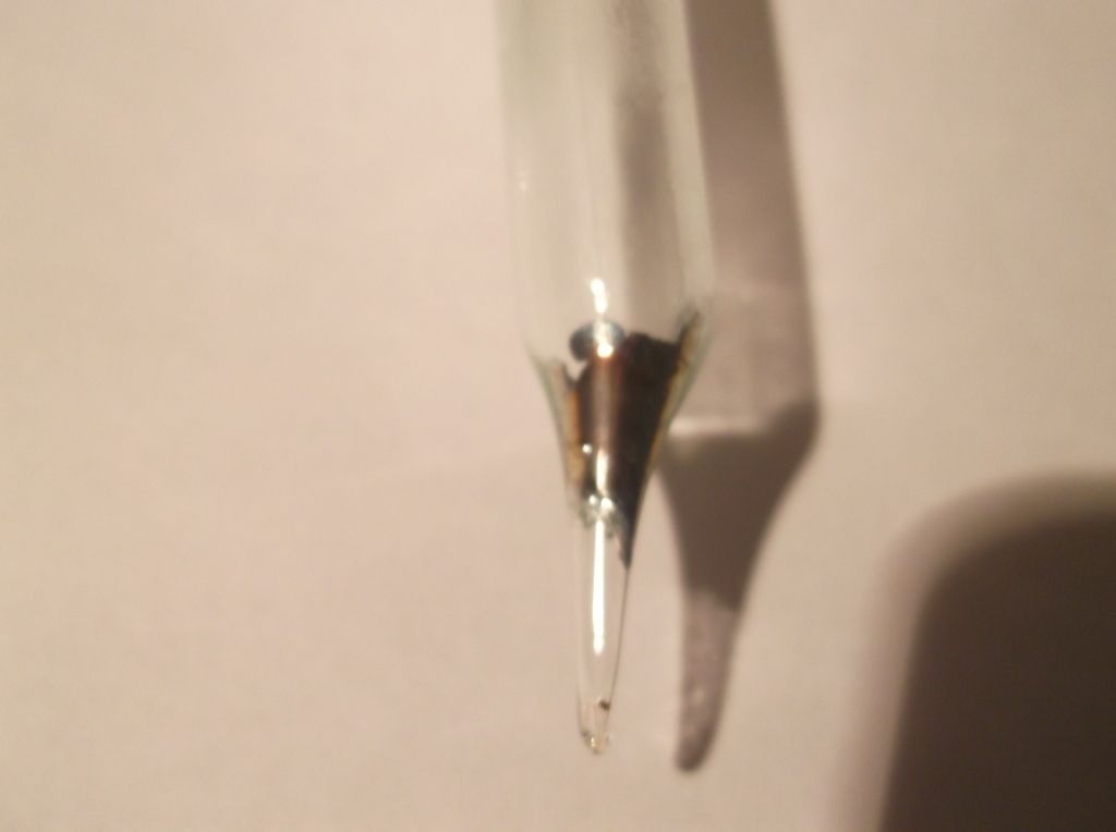 Сегодня пробовал получить комплекс хлорида серебра с аммиаком, но аммиак получился недостаточно сухим. Полученный комплекс был нагрет жидкий аммиак сконденсировался, однако внезапно трубка взорвалась. Делал на улице так что обошлось без всяких последствий, только распылило 3,0 г хлорида серебра, но это пустяки, у меня его много - 50,7 г. Видимо виновата капля воды, коснувшаяся нагретого стекла.