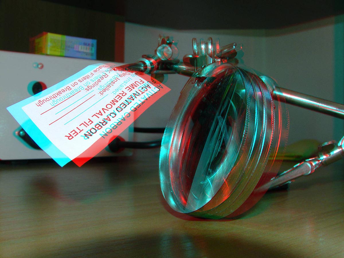Для просмотра нужны анаглиф очки - красный светофильтр слева, синий справа. очков не было, но используя поломанные КФК-2 извлёк подходящие стёкла и получился хороший анаглиф-лорнет.