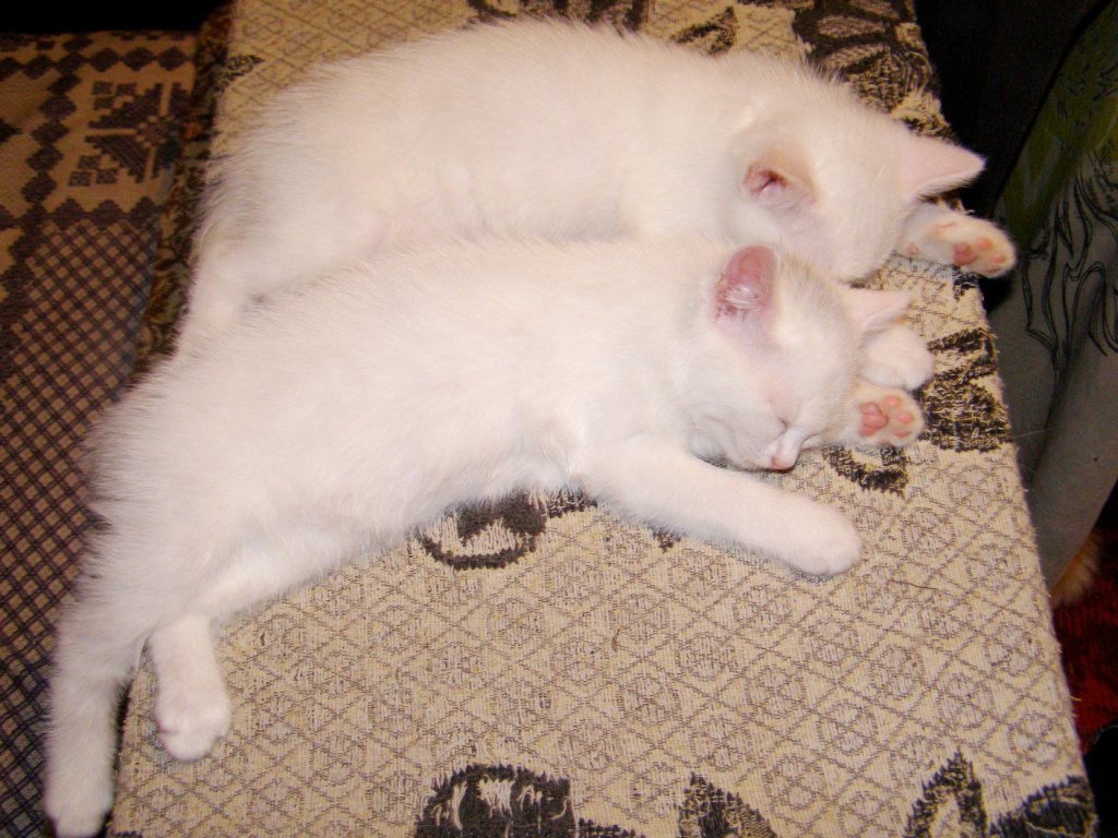 Недавно котёнок "завёлся". Абсолютно белый и абсолютно глухой.