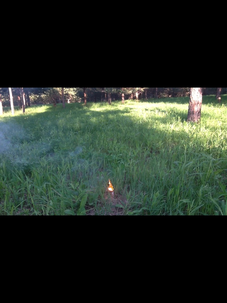 На этот раз замедлитель успел прогореть примерно только на половину, как сработал "заряд" (видимо, произошел, как писал Владимир, проскок пламени). Ничего особенного я не ожидал, и очень удивился, когда в воздух полетели комья земли. Получилось красиво, и гораздо тише, чем на сосне.