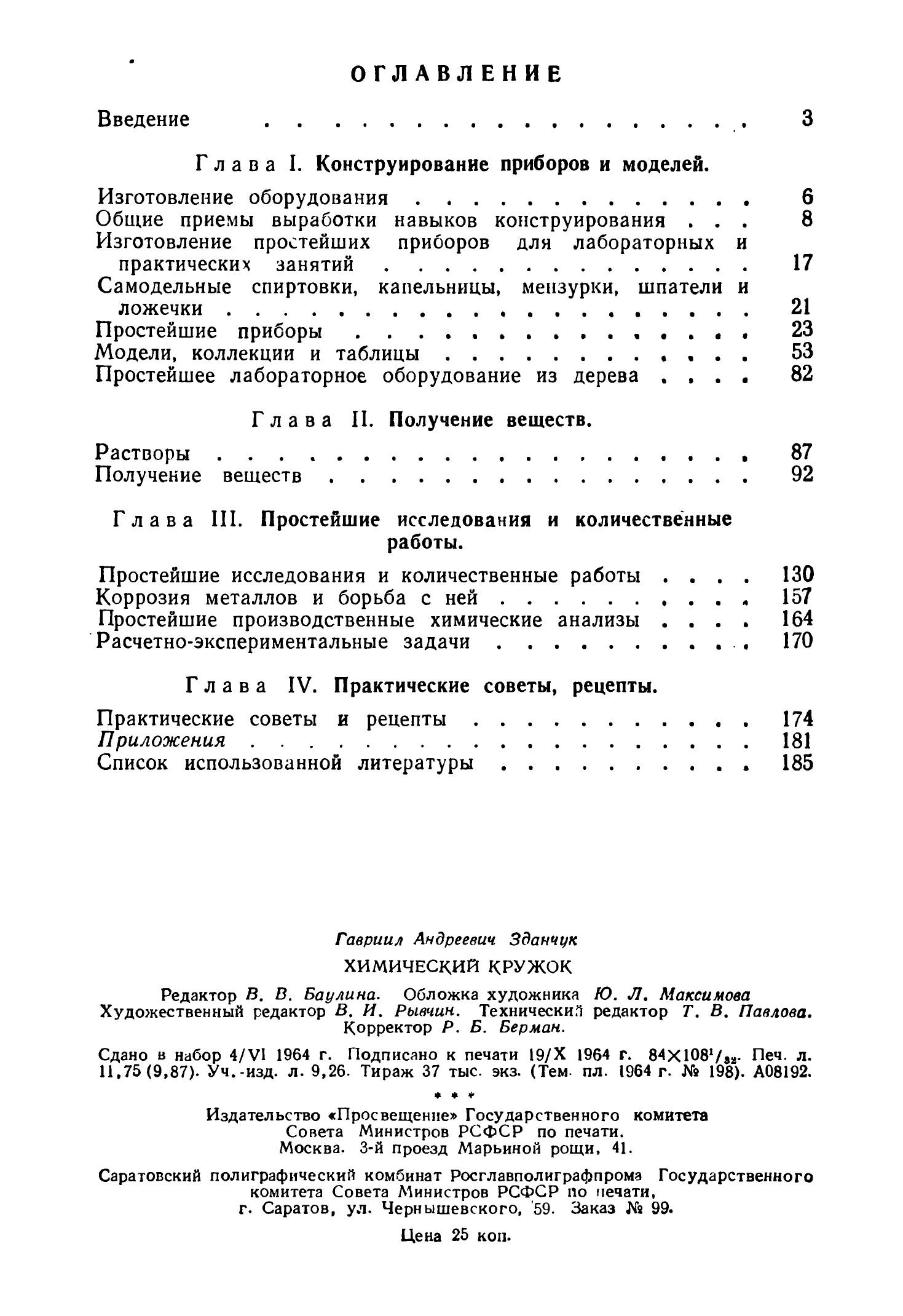 Зданчук Г.А. Химический кружок Пособие для учителей. — 2-е изд. — М: Просвещение, 1964. — 188 с.