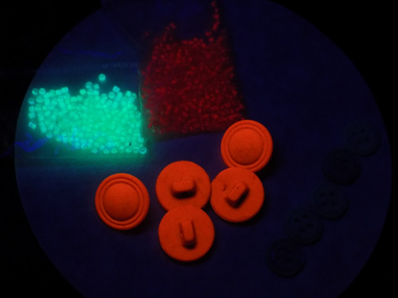 Я кажется уже вылаживал фото люменисценции Советских пуговиц покрытых такой же штукой:)