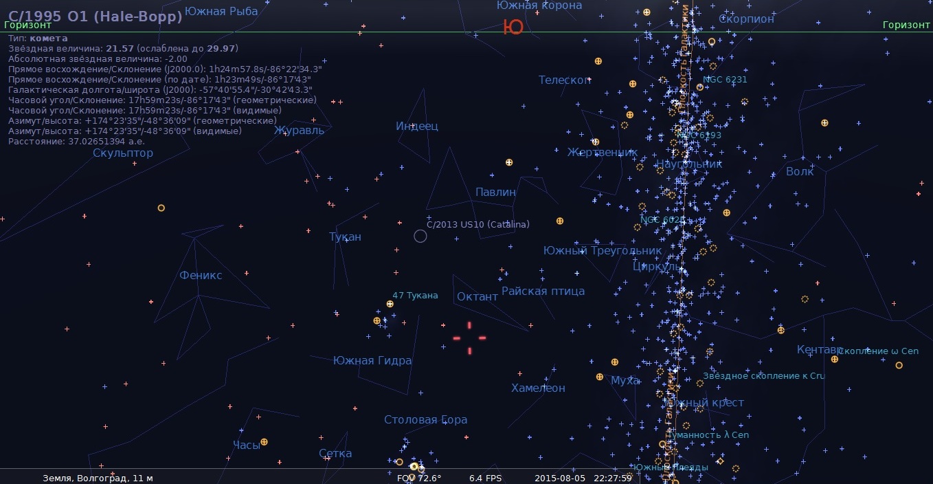 Комета Хейла-Боппа. Сегодняшнее положение - созвездие Октант (небесный Южный полюс). На 5 а.е. дальше орбиты Плутона.
