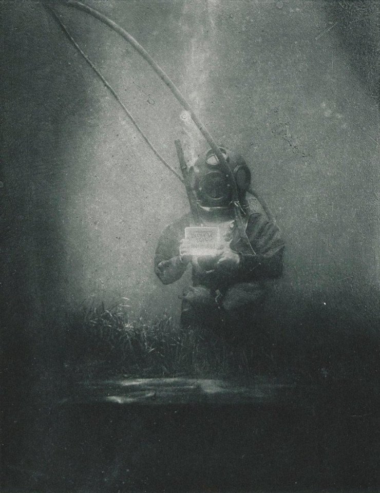 Одно из первых в мире подводных фото, сделанное Луи Бутаном, который использовал водолазный костюм, в 1893 году