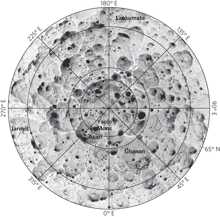 File comment: Северный полюс Цереры, испещренный следами метеоритных ударов