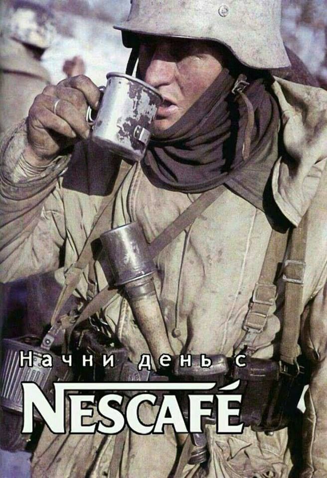 Примечательно, что швейцарская компания Nestle в то время обеспечивала растворимым кофе, шоколадками и сухпайками как немецких дидов, так и англо-американских :)