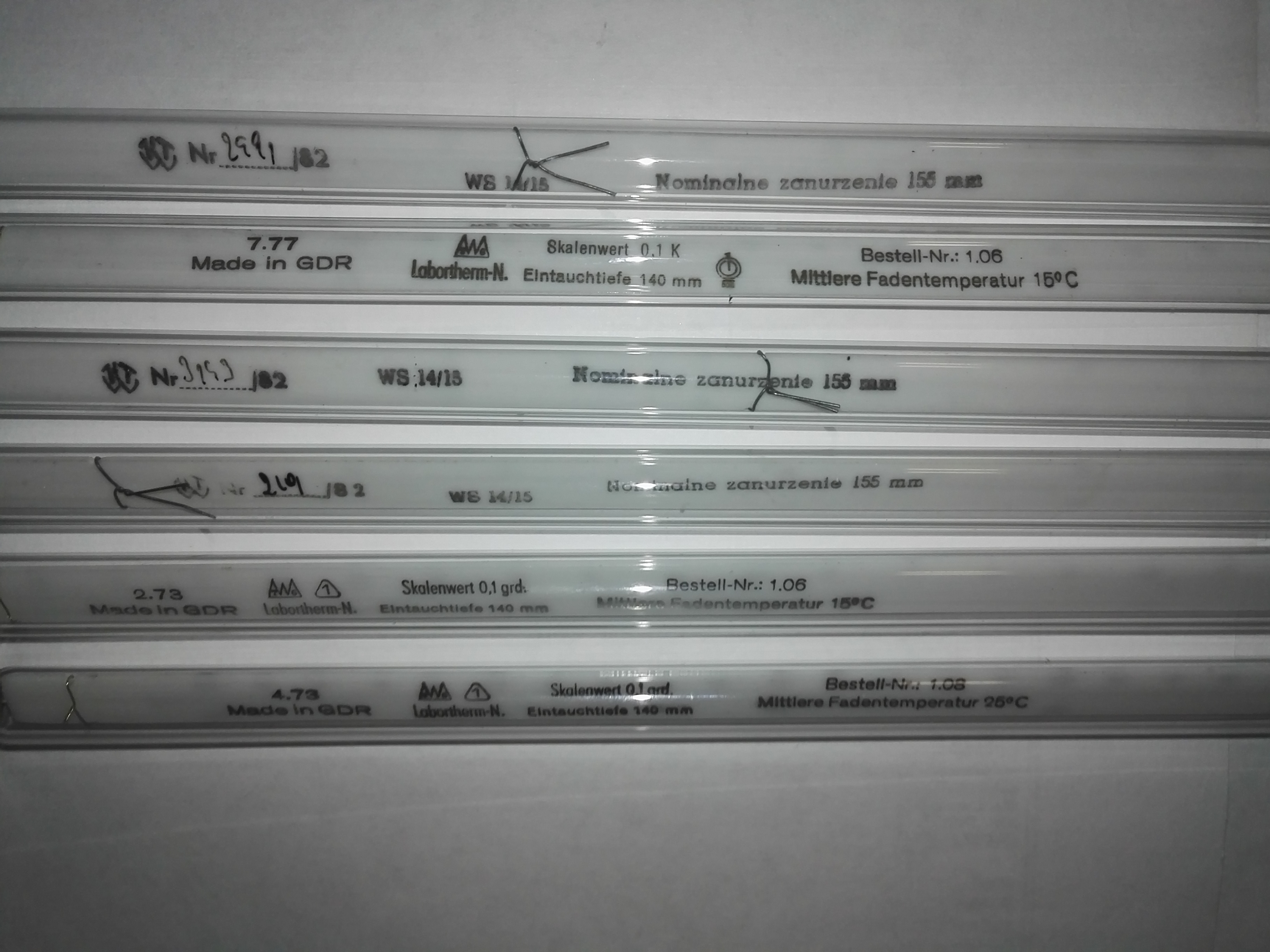Термометр лабораторный со шлифом. Набор ГДРовских термометров там от -70 до 300 разных диапазонов и точности но тут явно не полный комплект.