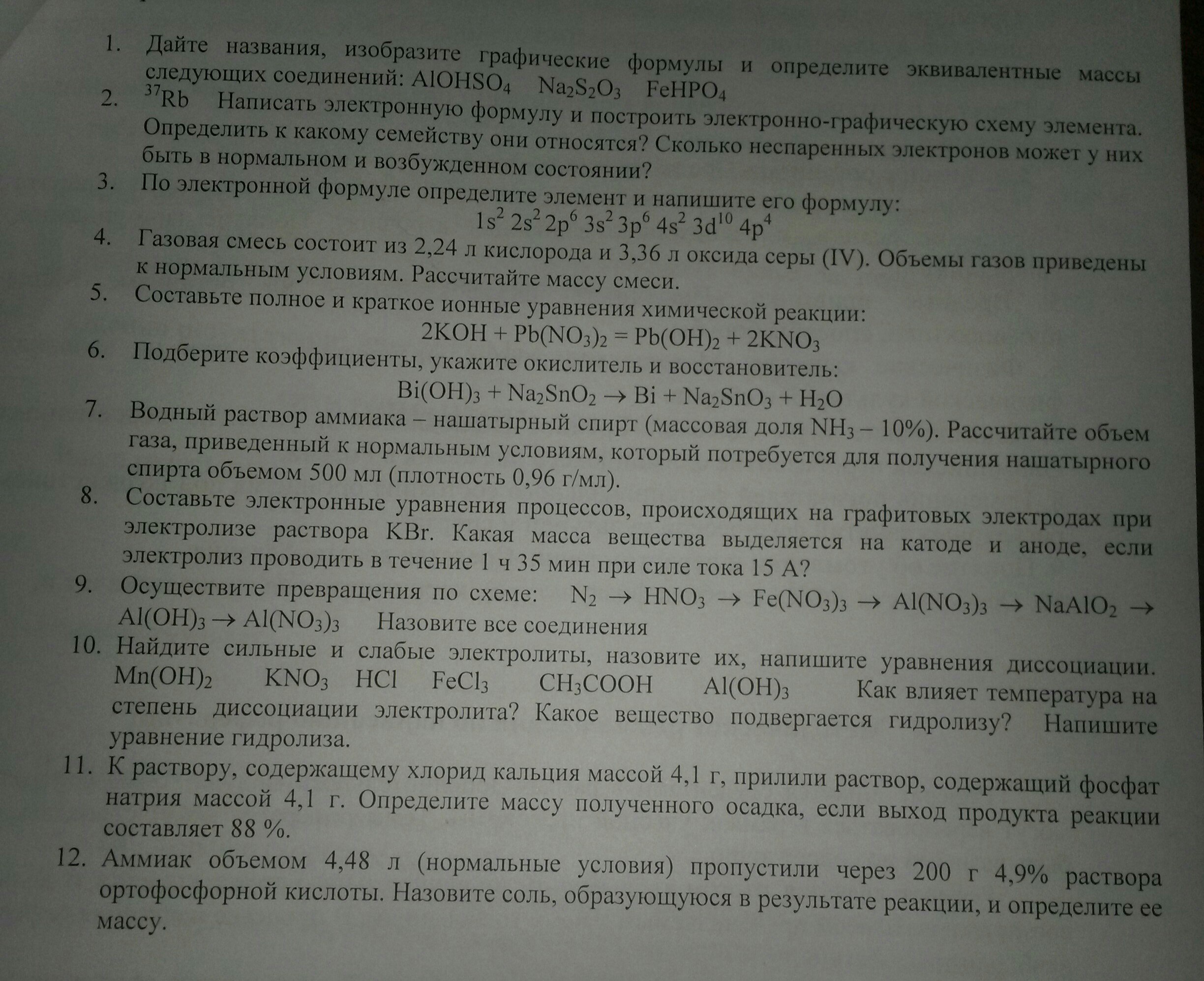 Доброго времени суток , извиняюсь за название темы , не знаю как оформить в случаи такой рассыпухи заданий , прошу помочь! Все что отделяет меня от зачёта и хорошого бала за экзамен по химии это пара задач ( увы химию я совсем не знаю)Очень надеюсь на вашу помощь!