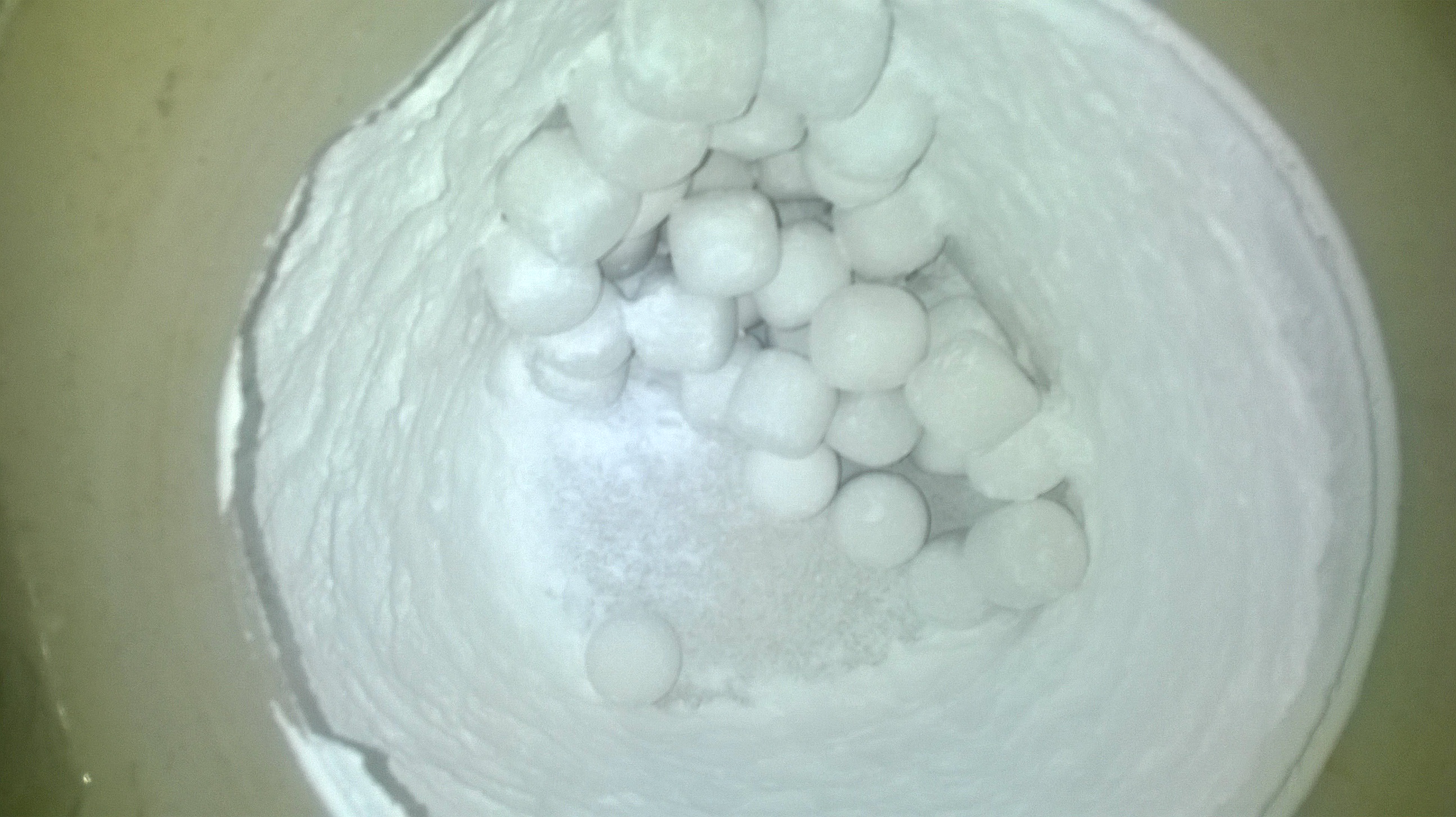 Было еще 2 барабана с шарами, которые он поручил мне отмыть от фосфата - для этого пришлось его отбивать толстой тефлоновой палочкой, поскольку горячая вода не помогала. Некоторые куски фосфата были такими твердыми и крупными, что я перепутал их со стершимися шарами. Разобрался не сразу.