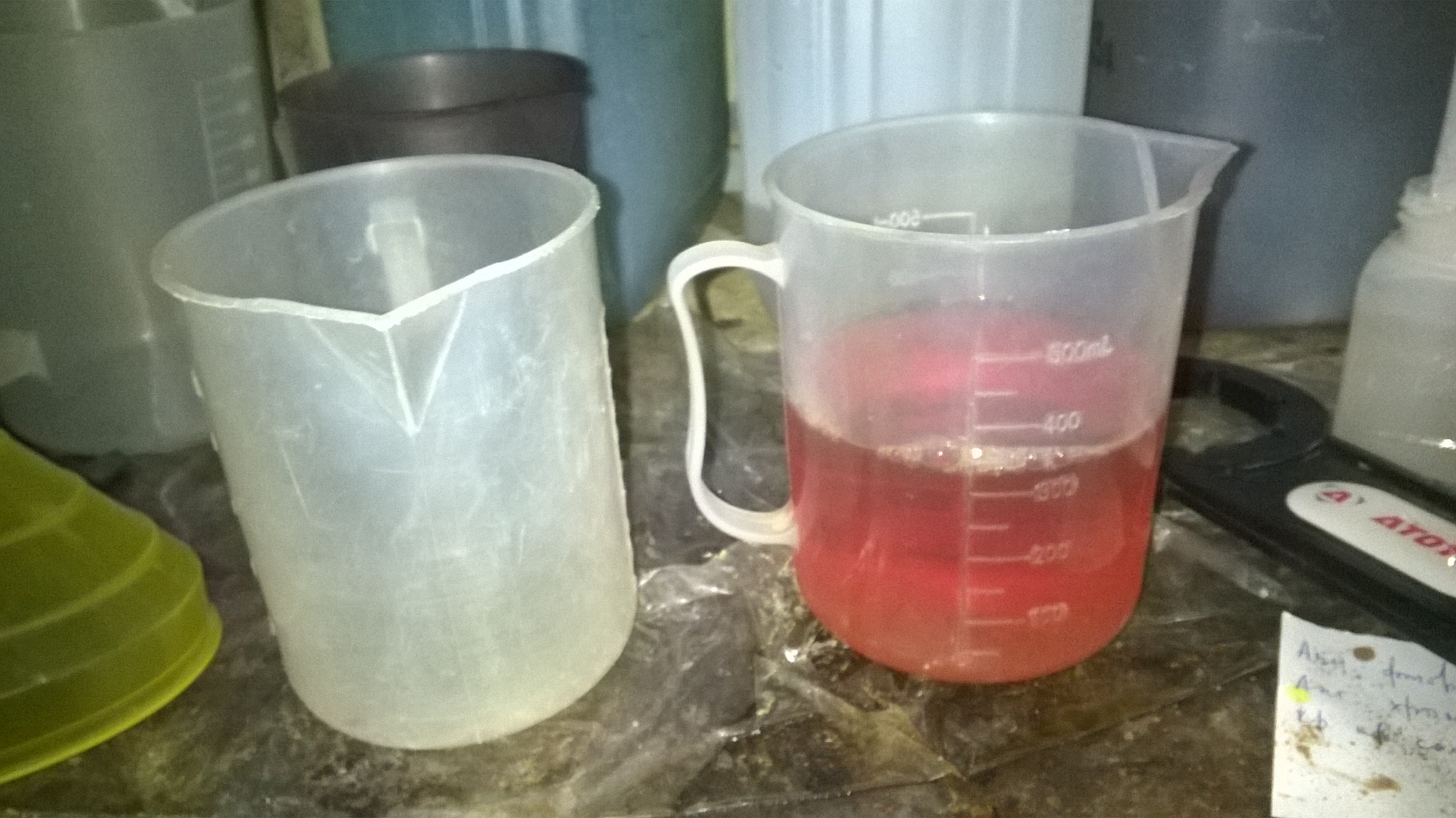 С некоторых пор использую ПП кружки на 1 и 2 литра (лабораторная посуда) - удобно. Шкалу в потёмках не увидишь, но можно маркером поставить метки.