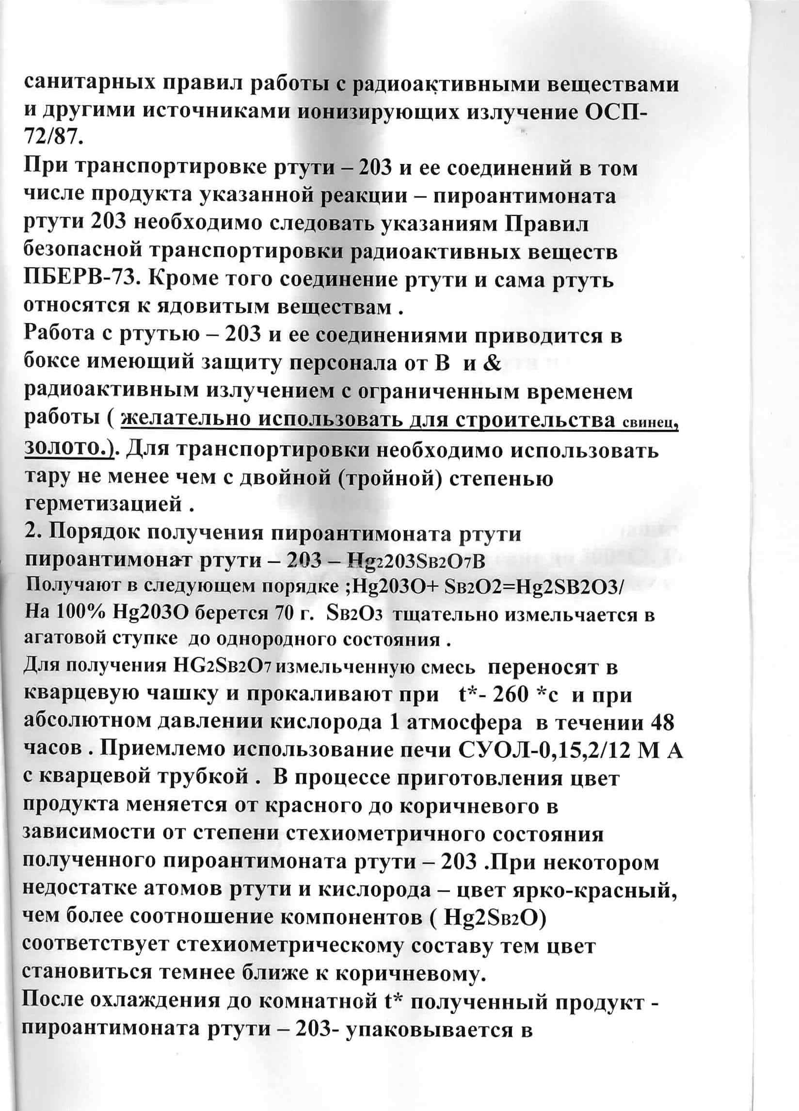 у меня есть технологический процесс производства красной ртути