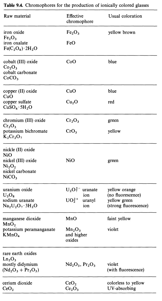 Синий кобальт, зеленый никель.