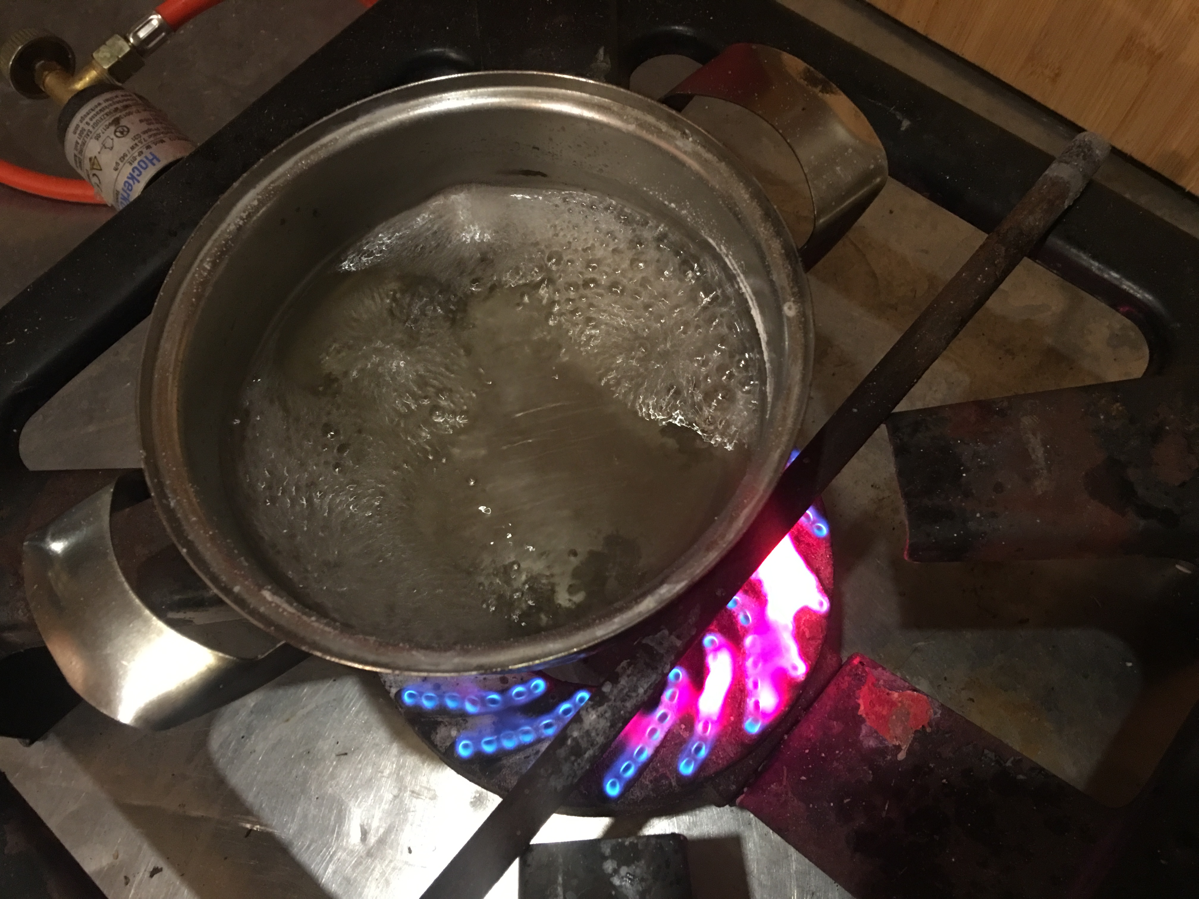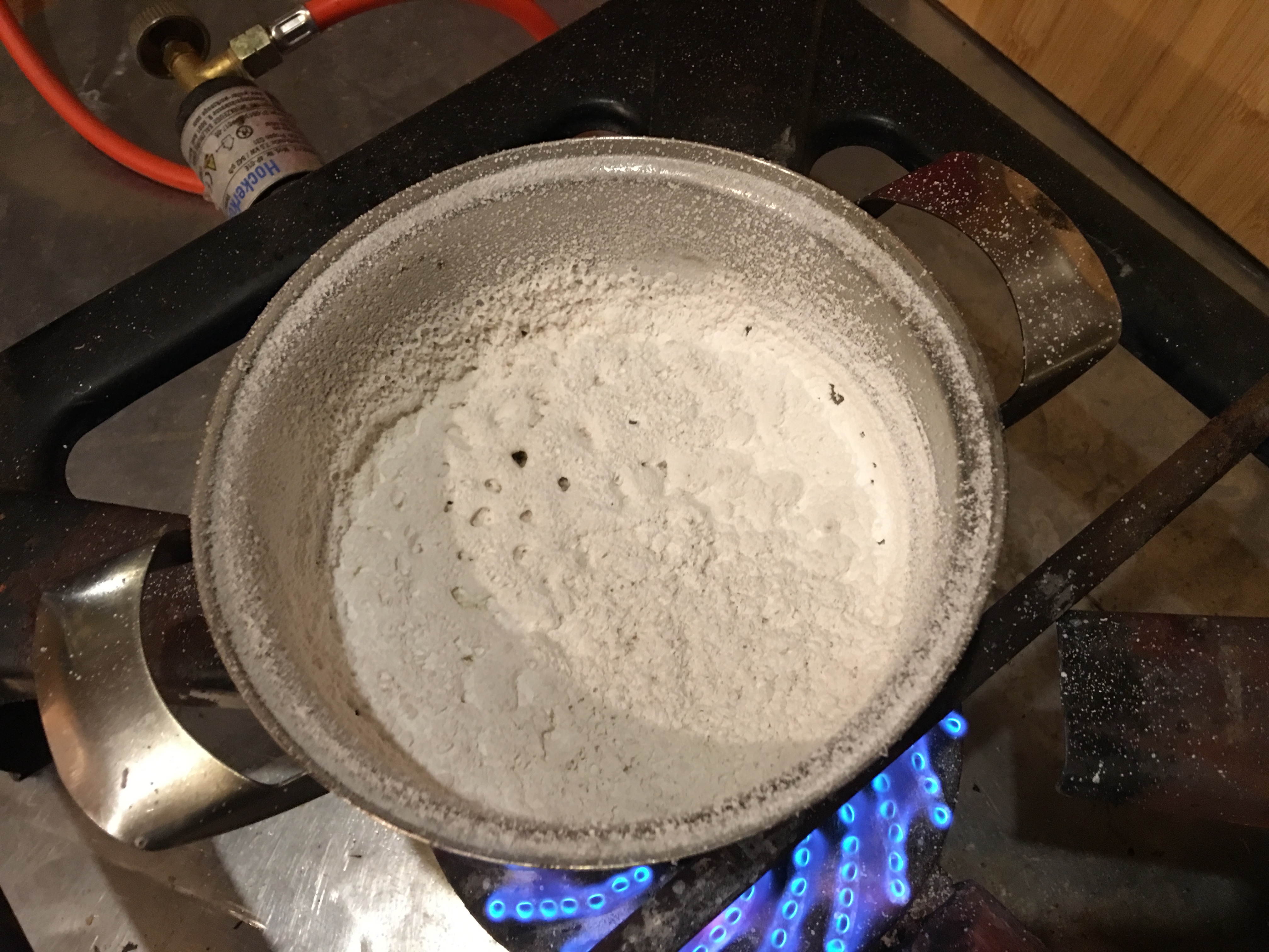 В процессе кипения, за счёт вылетающих микро-капель пламя горелки окрашивалось в яркий малиновый цвет. Этот признак удавшегося синтеза уже радовал.