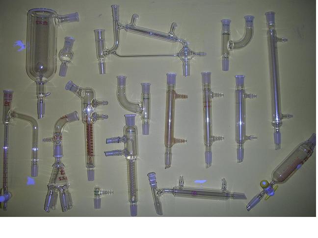 Мне больше интересны первая стекляшка (похожа на Дина-Старка, только принцип работы, видимо, другой) и колба с крантиком (для замораживания газов?)