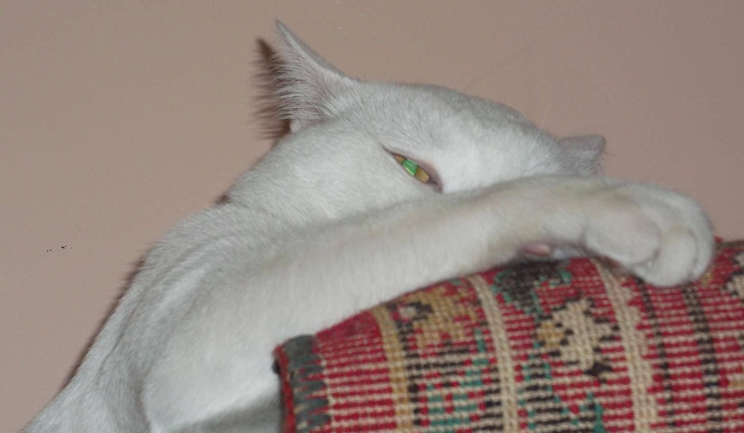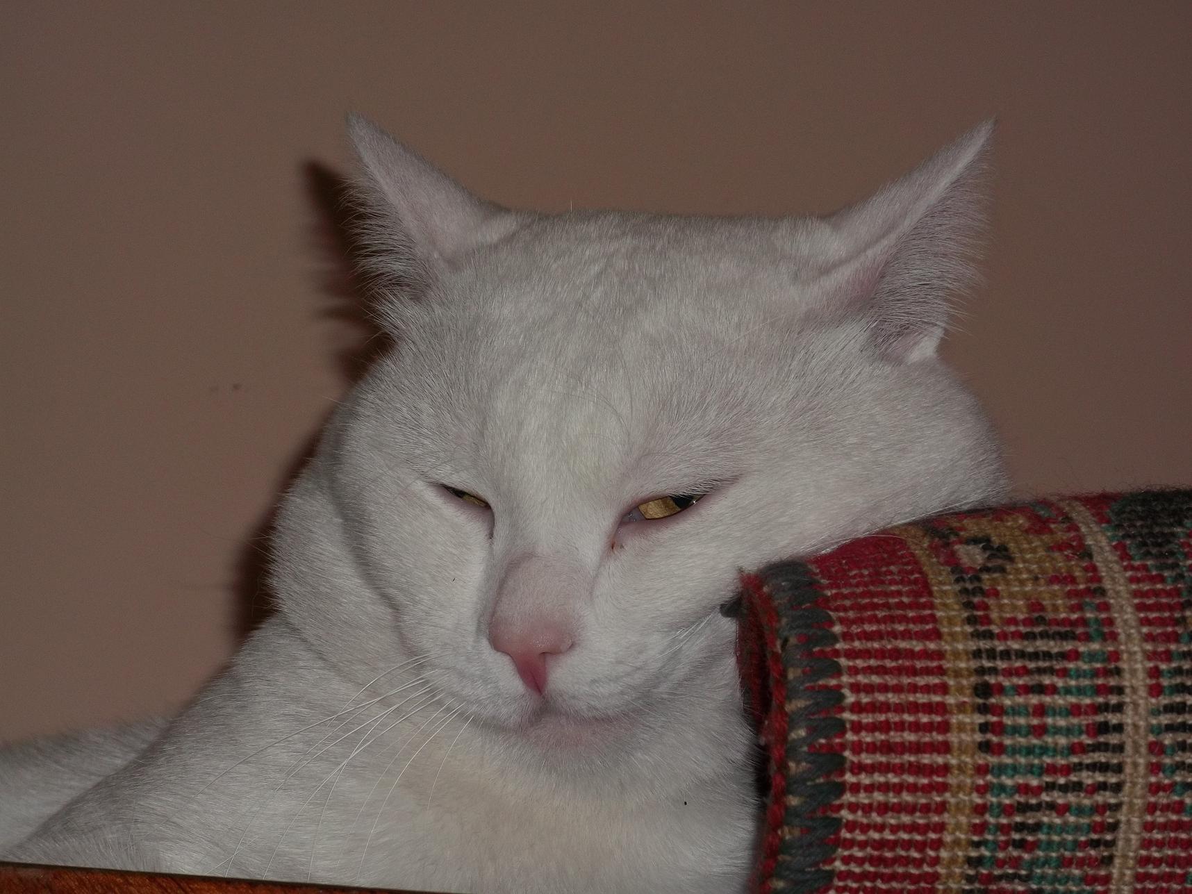 Один серый "котенок" (возрастом 5 лет), которого я не смог пристроить вместе с белыми, сидит сейчас передо мной.