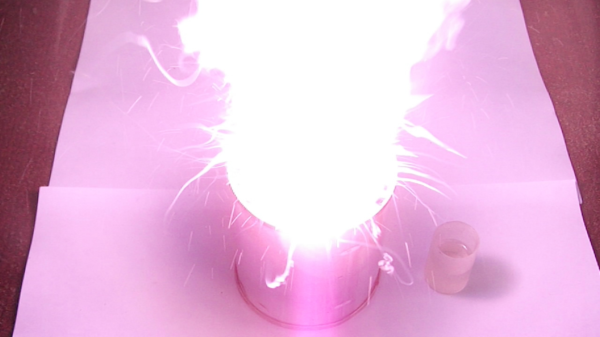 Р.P.S. Иван Николаевич, все таки толково Ваш хлоркаль-сахар горит. Прямо загляденье. Примечательно, впрочем, что навески взяты исходя из стехиометрических соотношений компонентов. Обычно в пиротехнике "форсовые" составы имеют незначительный дефицит окислителя. Однако остатки от сгорания Вашей смеси едва ли могут вызвать нарекания...