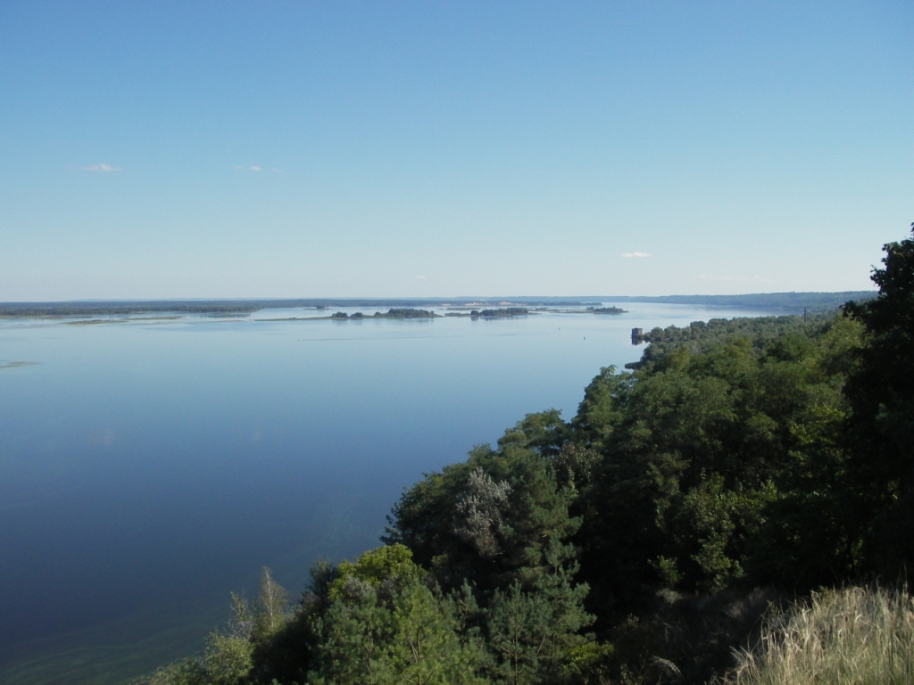 Итак, начиная с Триполья и далее вниз по правому берегу идут легендарные днепровские кручи: гора - долина, гора - долина... и так до самого Канева и даже дальше. Дотошный географ, наверное, меня бы одёрнул, заметив, что этим холмам до гор, как до неба, но у нас все так говорят: "Трипольская гора, Халепская гора...". Посему не стану ломать традицию: гора - так гора:) ). Горы эти весьма крутые, в некоторых местах даже обрывистые. Ясное дело, Днепра работа - точит себе потихоньку... Знакомый яхтсмен однажды рассказывал, как на его глазах кусок берега, размерами этак 10х20 метров, с шумом съехал в Ржищевскую бухту, вызвав локальное "цунами", чуть не сорвавшее его яхту с якоря. Естественно, днепровские кручи эти, исстари непаханые из-за крутизны и непостоянства берега, давно заросли диким лесом: чахлые клён и берёза перемежаются здесь соснами-самосейками, меж деревьями то тут, то там виднеются чащицы диких груш и шиповника... Это если смотреть с воды, то есть с лодки. Потому что сверху, стоя на краю обрыва, ничего такого не видно - лишь верхушки деревьев да уходящий вниз крутой склон... А там, где более-менее полого, сразу буйствует лиственный лес - какой уж тут шиповник! Но попытка - не пытка...