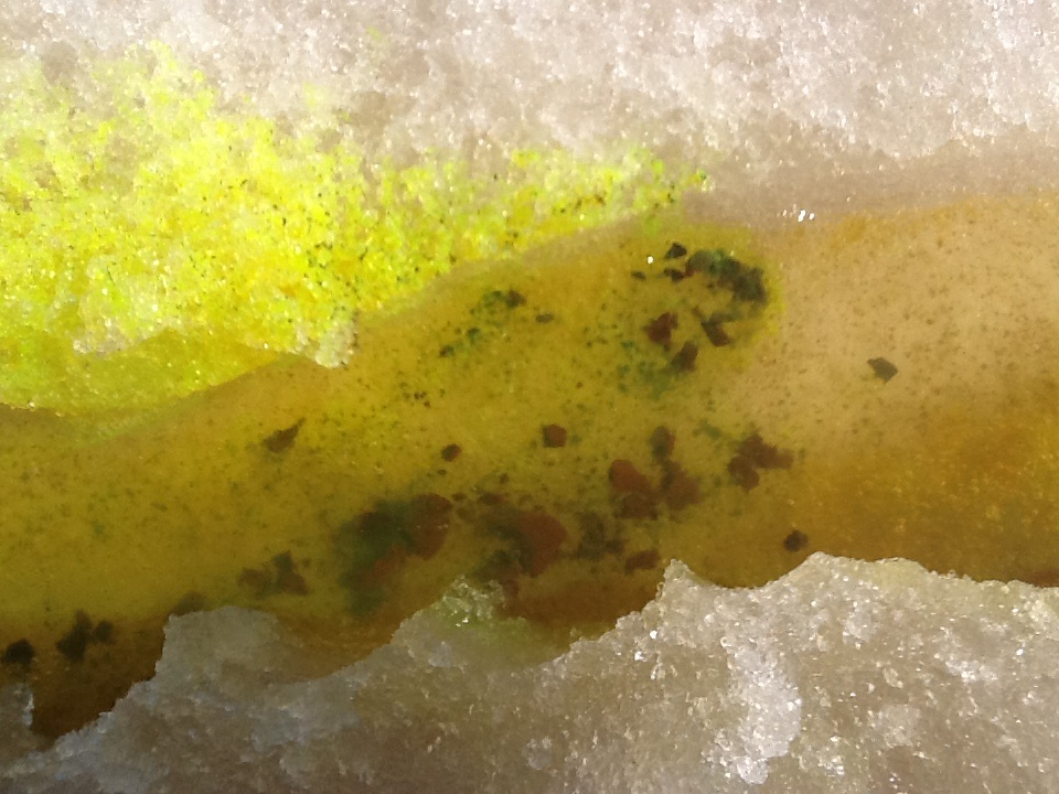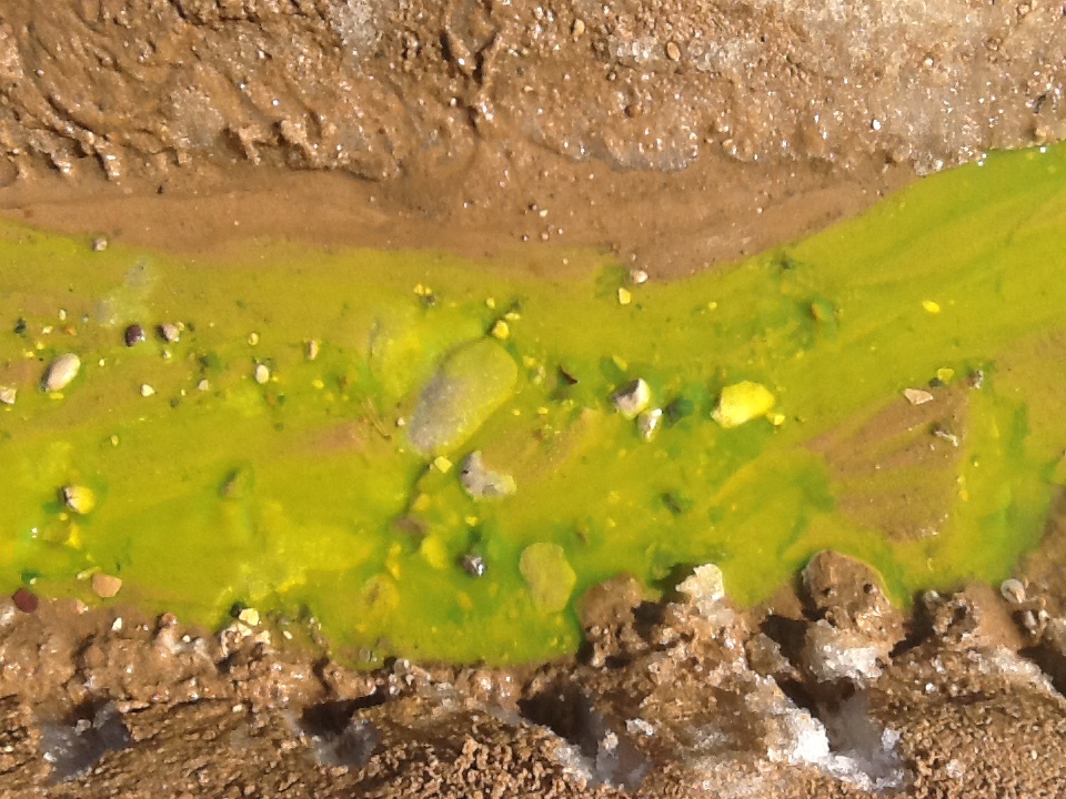 Покраску ручья я начал около часа дня, к трём (или уже ближе к четырём) окраска распространилась на всю длину ручья (примерно 600 - 700м). Снизу смешивались сразу два ручья ("флуоресцеиновый" и обычный), красота большая (!!!), но фотографией не передать, на видео видно ещё туда-сюда, но "в живую" это гораздо красивее :ay: .
