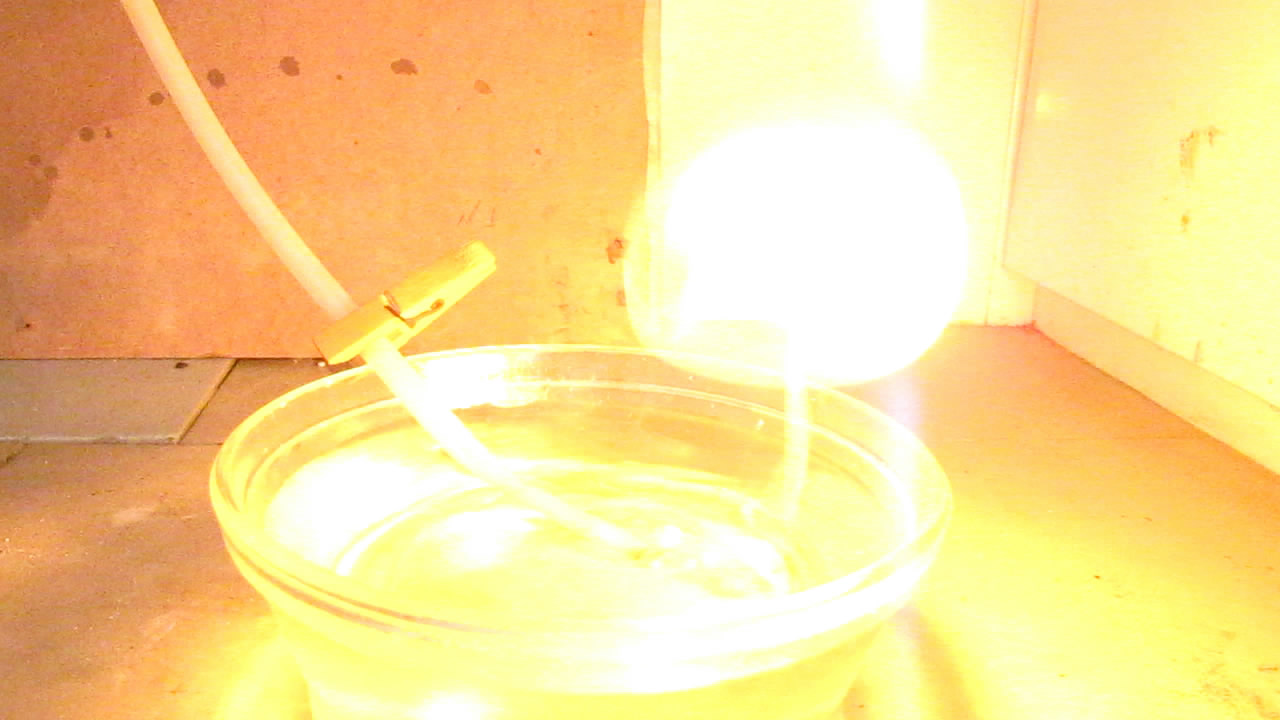 У меня возник вопрос: как можно увеличить диаметр пузырьков фосфина и уменьшить частоту их выхлопов? Есть два предположения: первое - глубже погружать конец газоотводной трубки, второе - взять газоотводную трубку большего диаметра.