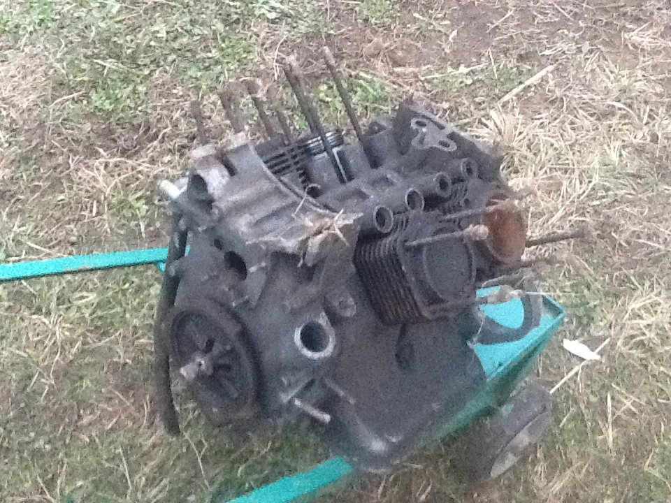 Это и есть мотор от запорожца. На фотках где лежит куча деталюх то тоже запчасти от него: поддоны картера, корпуса вентилятора воздушного охлаждения.